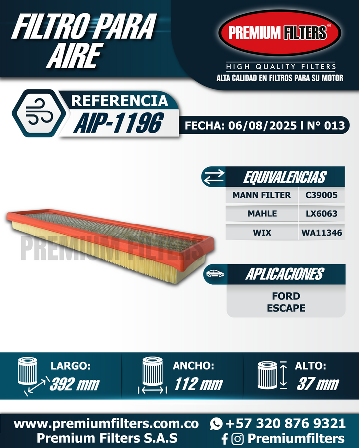 Filtro de Aire / AIP-1196 FORD ESCAPE