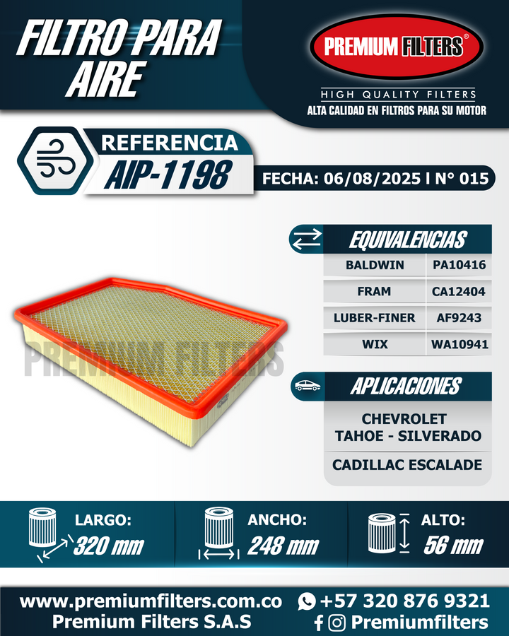 Filtro de Aire / AIP-1198 CHEVROLET TAHOE - SILVERADO - CADILLAC ESCALADE