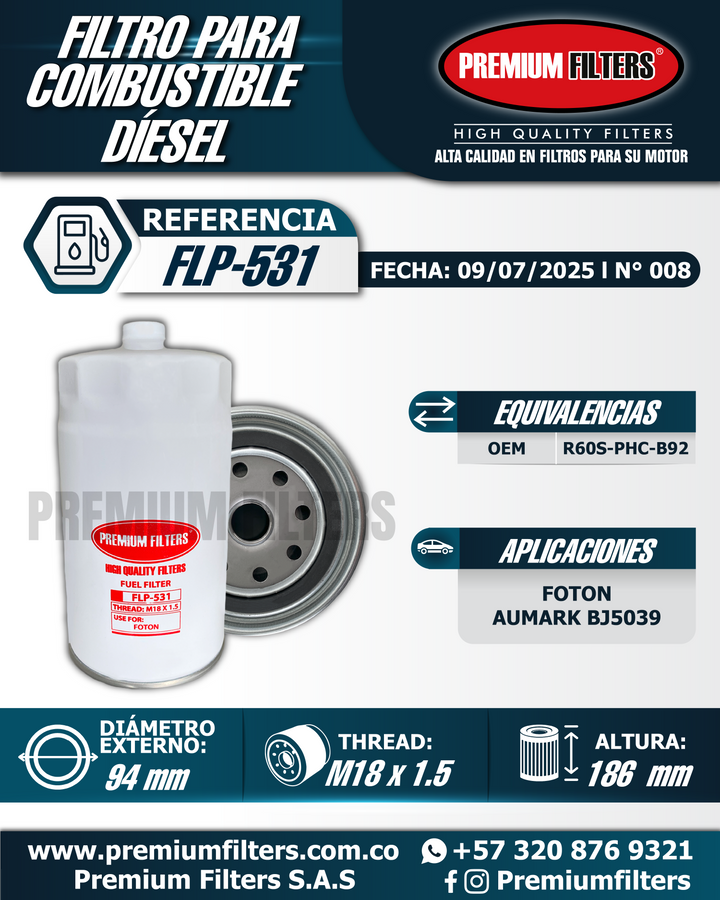 Filtro para combustible FLP-531 FOTON AUMARK BJ5039